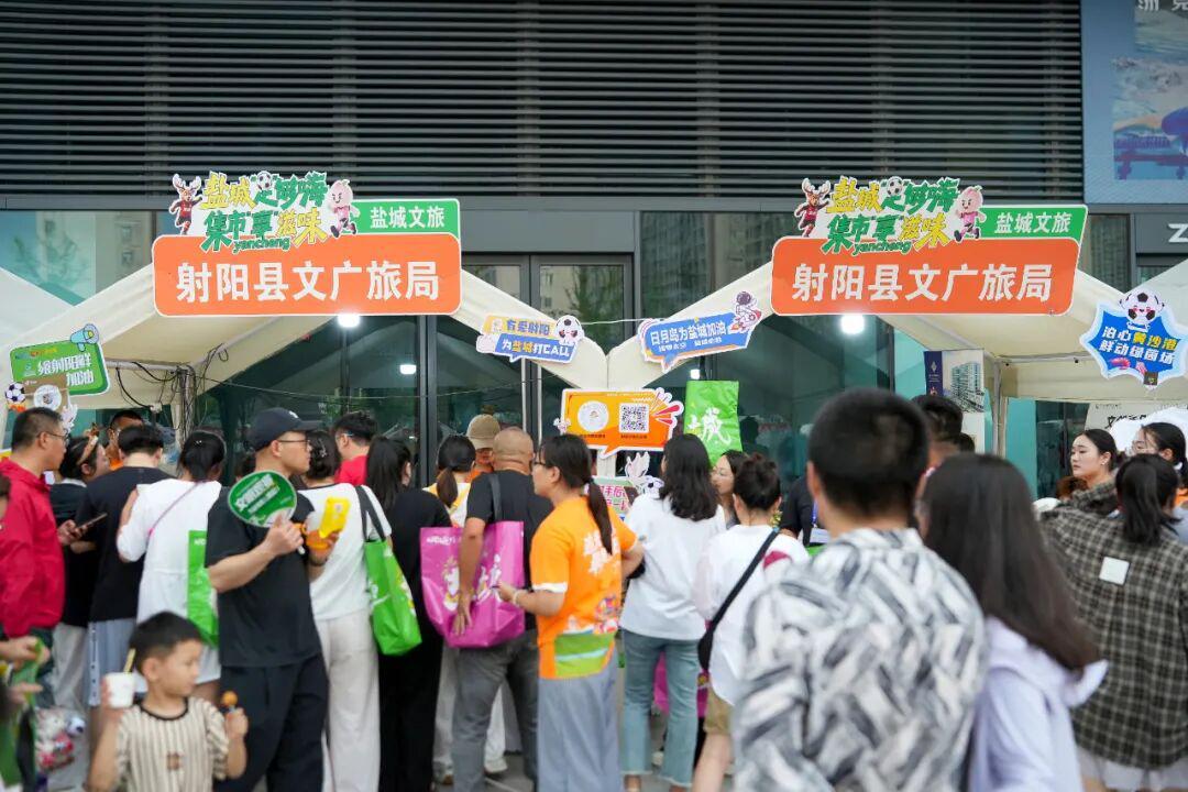 值得关注的还有设在盐城奥体中心门口的文旅集市。这里人气爆棚,射阳文旅摊位前更是排起了两条长长的队伍。“飨射阳鲜”品牌带来的油炸青虾球、鱼丸关东煮等试吃美食香气四溢,引得盐城、无锡两地球迷纷纷驻足排队。“逛了这么多摊位,我觉得射阳的产品十分丰富!”一位来自外地的球迷胡园园分享道,“听说这些免费品尝的小吃都是射阳本地出产的,吃起来确实鲜极了,等有机会,我一定要去射阳打卡。”